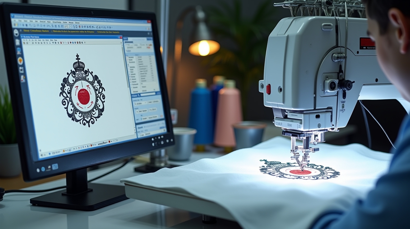 Before stitching, the design must go through digitizing, which converts it into a stitch file.